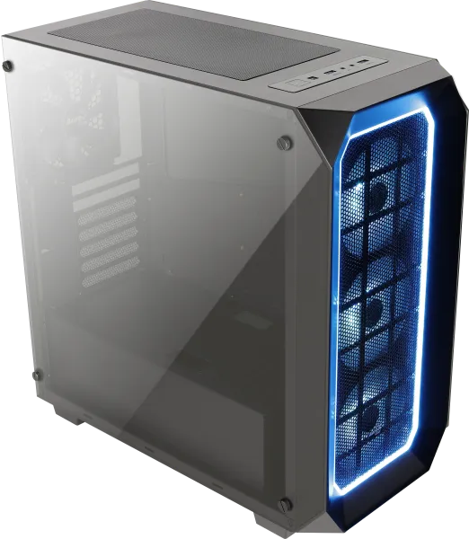 Стенки корпуса сделаны из закаленного затемненного стекла, сквозь которое будет видно буйство внутренней подсветки. За решеткой на передней панели скрываются три вентилятора, прикрытые пылевым фильтром. Кейс вмещает два HDD и два SSD, а также видеокарты длиной до 414 мм. Кстати, на верхней стенке предусмотрено место для крепления радиатора водянки DEEPCOOL Captain 240EX.
