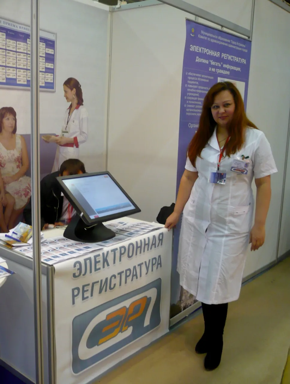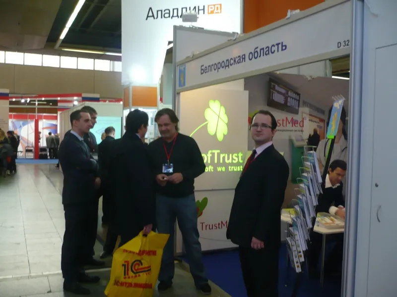 Электронную регистратуру также можно посмотреть на стенде Белгороского правительства (разработчик softtrust ). Система "ТрастМед" предлагает автоматизацию не только регистратуры, но и всего документооборота поликлиники, установку симпатичных табло на дверях приёмных, электронное табло с расписанием и, конечно, запись по интернету.