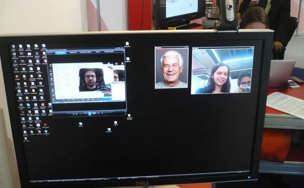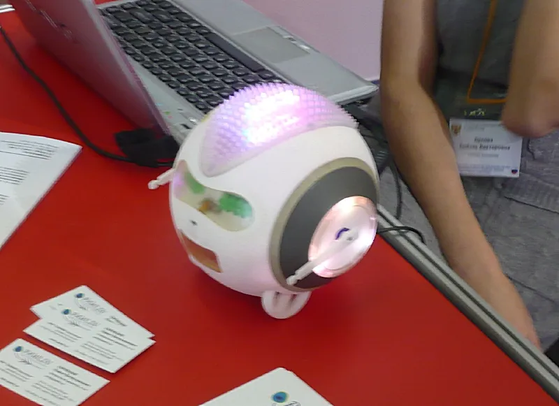 В уголке стенда D45 по соседству с институтами и университетами разместился "Павлин". На их стенде можно было опробовать систему распознавания эмоций. Помню, баловалась такой штукой на стенде Play Station на Игромире. У окружающих, да и у меня самой это вызывало истерический хохот, так как надо было изрядно скривить рожу, чтобы компьютер тебя понял. Так получилось в этот раз. Долгое время наблюдала, как двое солидных мужчин корчили рожи в видеокамеру, настраивая систему. Попробовала сама - было весело. На этом же стенде сидел маленький робот, но он, к сожалению, не работал. Такие дела.