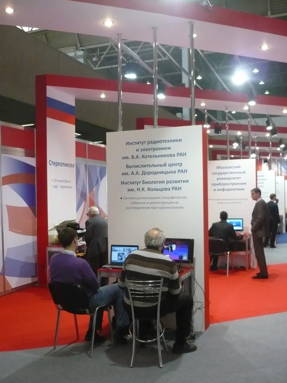 Мой любимый стенд Российской Академии Наук с загадочными железками пополнился экспозицией по стереографии. Российский Фонд Исследований выглядел пусто и печально.