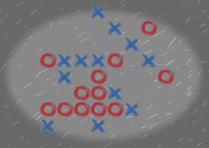 Затем поворачиваем направо, заходим в недетскую комнату, здороваемся, и играем с дитём в кретики-нолики. Т. к. доска почти безграничная, то играть можно долго и упорно, но смысл один – выиграть у этой шалавы, и поставить подряд 5 своих знаков (по горизонтали или по вертикали, или по диагонали, это как получиться).