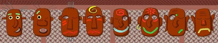 После, идём вперёд, вперёд и влево. Играем с Гиви в его любимую игру на шампурах и заходим в комнату моряка. Берём кассету и, спрятанный в горшочке, мел, обыгрываем старого морского волка, и заходим в комнату капитана Немо, поворачиваем направо и играем в морской бой. Разбомбив все кораблики, отправляемся дальше. В чайной с блюдца берём кассету, а рядом на стене решаем маленькую головоломку. Проходим в комнату с кукушками и запихиваем их всех в их домики. После этой нервотрёпки идём в комнату индейца. Строим маски в каком надо порядке
