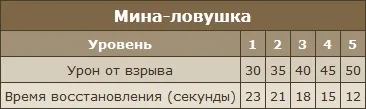 Позволяет исползовать мину, приблизившись к которой враг отлетает на некоторое расстояние и теряет немного здоровья. Крайне полезное умение для коллективной и индивидуальной игры. Во-первых взрыв такой малышки рассекретит положение врага, во вторых с её помощью можно удерживать некоторые ключевые точки.