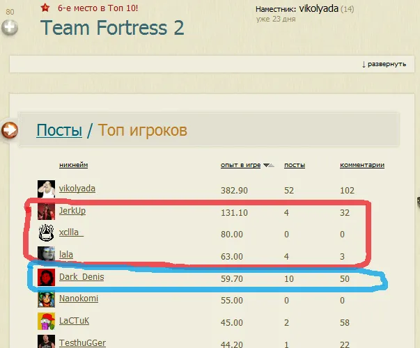 2. Сделайте уже что-нибудь с топом игроков игр, просто есть опасения, что проставив плюсы любой новичок может скинуть наместника (я не имею ввиду конкретно блог TF2). Это печально: