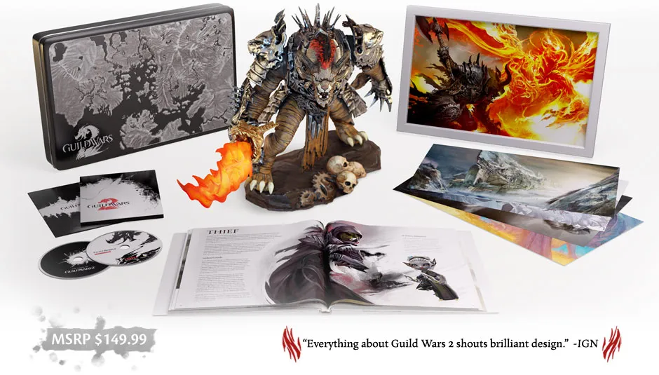 Что мы знаем о ней. Она имеет твердый переплет и 112 страниц. Эта книга достойно украсит любую коллекцию любителей искусства, т.к. там собранный не только ключевые моменты разработки ГВ2, но и прекрасные арты талантливый художников компании ArenaNet. Так же из этой книги мы сможем узнать какие грандиозные планы были у разработчиков, и как они менялись по ходу разработки игры.