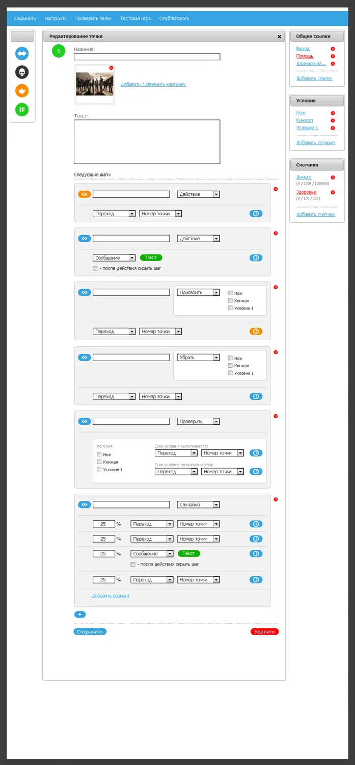 Приоткрою немного завесу тайны :) И покажу внешний вид редактора мифической точки "if", которую в народе уже прозвали просто "зеленая" :)