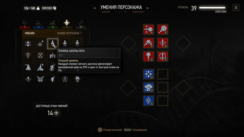 Дополнительные умения. Выбираем навык Школы Кота для увеличения шанса на критический удар