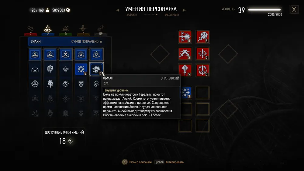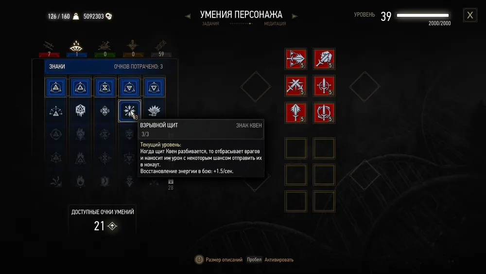 Рекомендую первые очки потратить именно на прокачку синей ветки: знака Аксий (для диалогов), альтернативного Аксия и Квена (Квена в первую очередь: у меня тоже иногда руки заворачиваются бубликом, и я получаю по шее, а Квен не только спасет от 1 удара, так еще и в ответ откинет врага (иногда игроки принципиально не используют данный знак, считая его "читерским").)