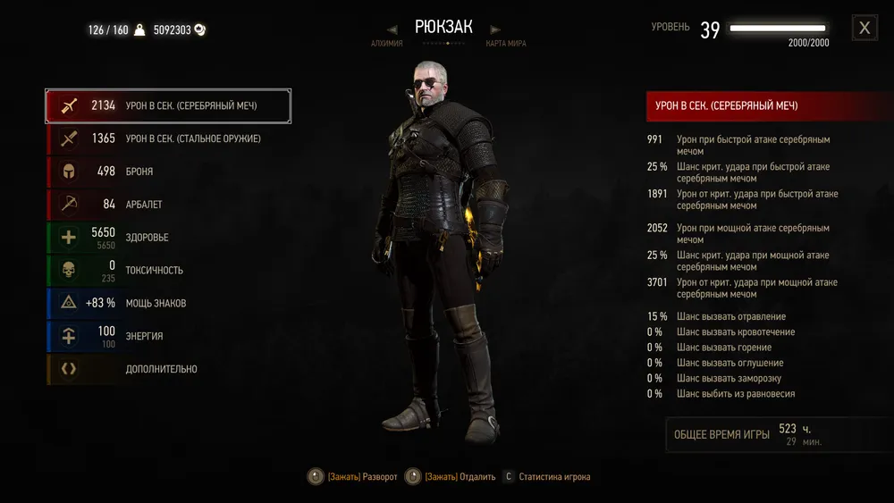 "СТАТИСТИКА И ПОКАЗАТЕЛИ" Вот что мы получаем к 39 уровню (без применения зелий, масел и отваров).