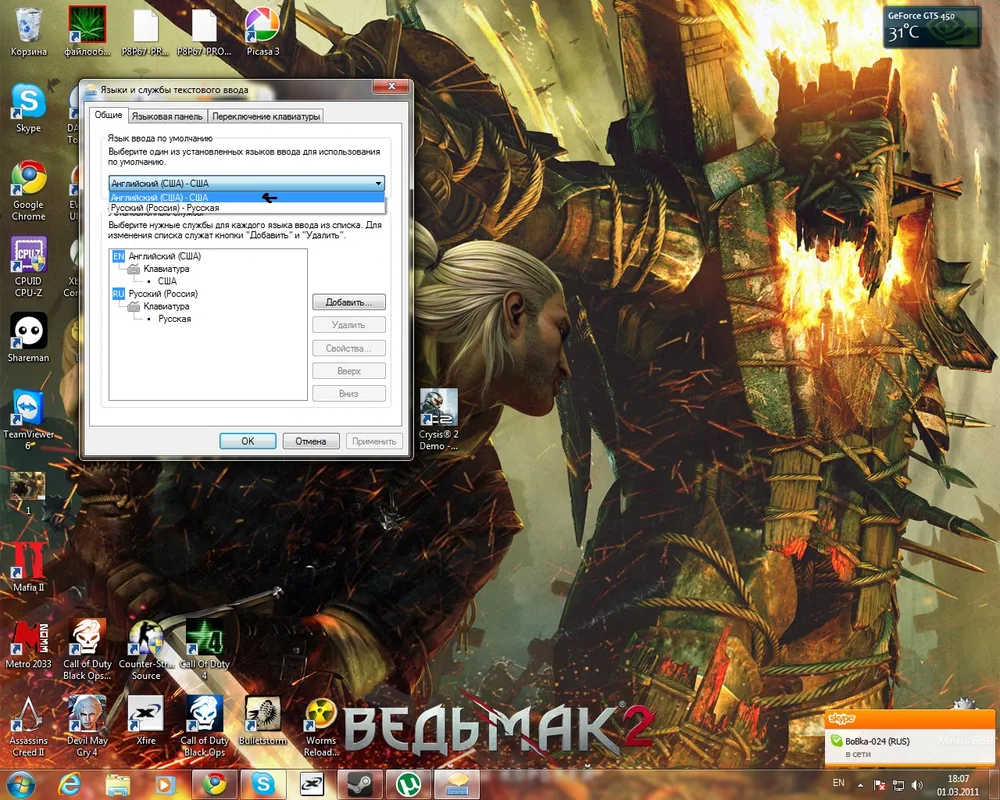 Далее разворачиваем список и выбираем англ. язык. И теперь у вас по стандарту стоит англ. а дополнительный Русский.