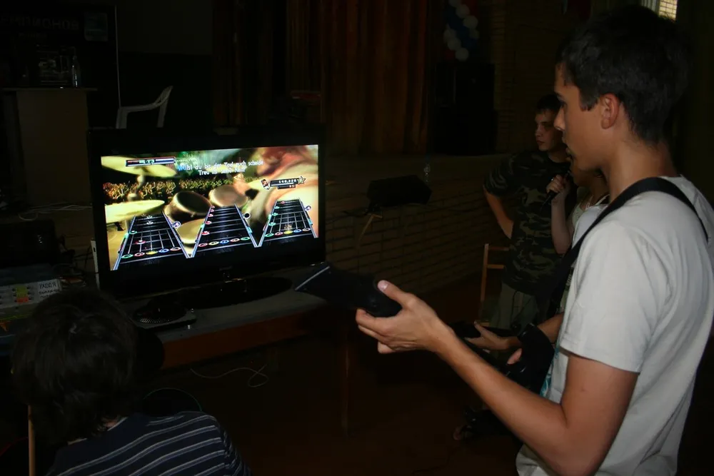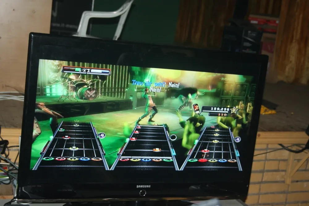 Гитара играть, барабан стучать, микрофон орать.