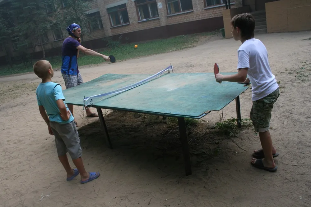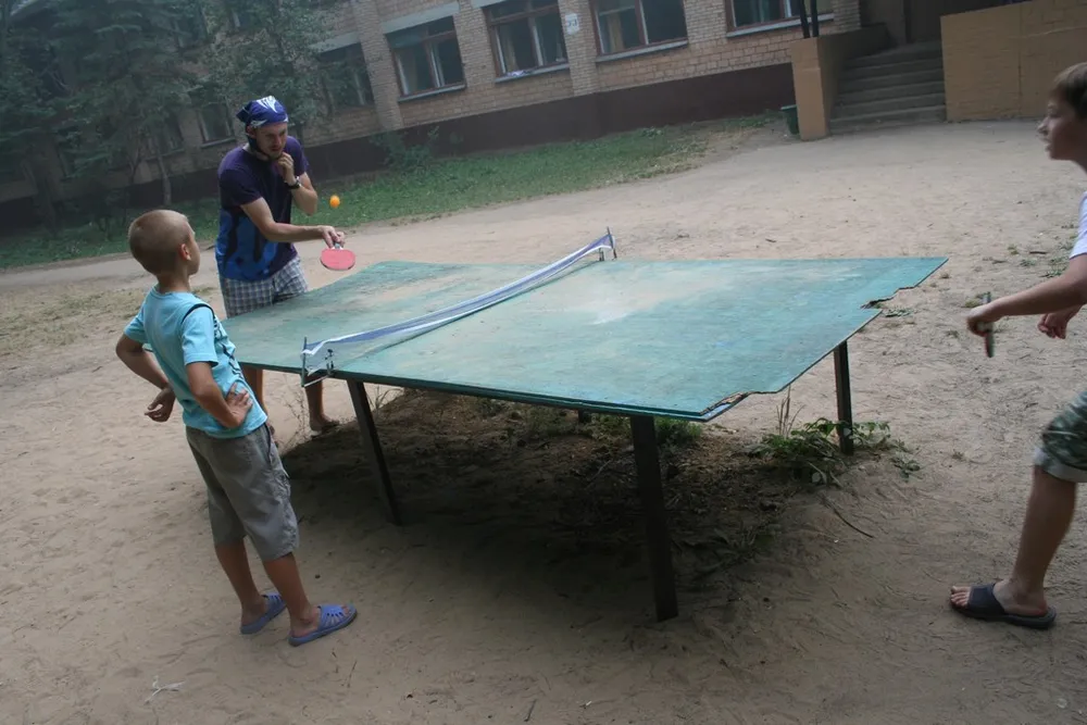 Бабуля-Кабзон-Джигурда-Кирилл(ну он так представлялся, что я могу поделать:) наказывает детей в настольный теннис. Меня тоже наказал, но я конечно поддался, ибо фан))
