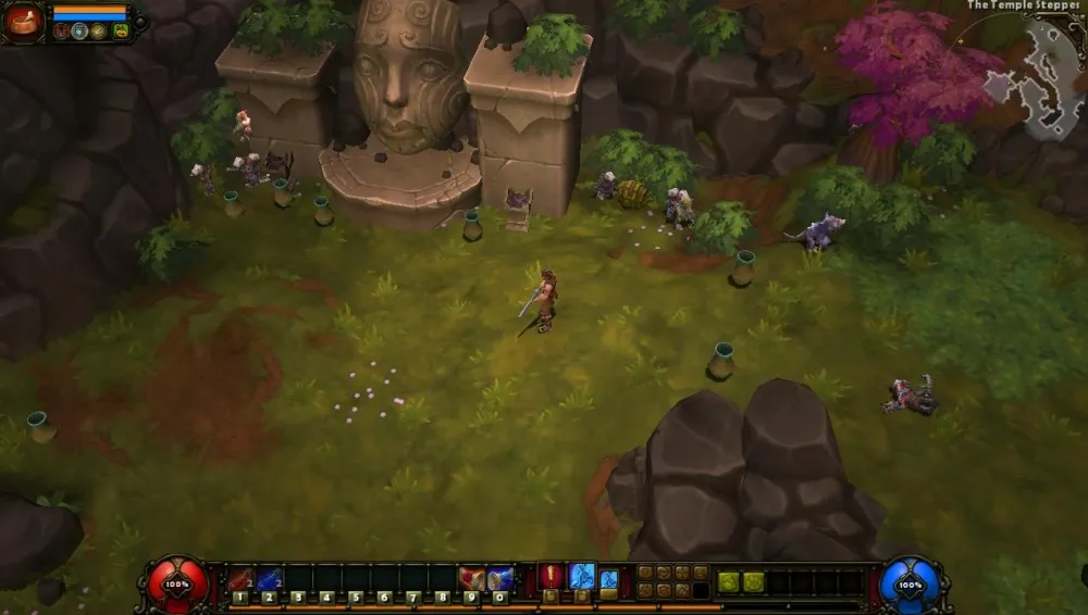 Первая открытая локация в игре - "Храмовые степи". Это зеленая тундра, с неравномерным горным рельефом, и имеет реку, текущую из одного конца в другой. Направление реки генерируется случайным образом при каждой новой игре и генерации зоны. Храмовые степи - открытая песочница, включающая несколько случайных подземелий; подземелий, связанных с заданием, достопримечательности и случайные события. Лагерь работорговцев и Сад слез - примеры достопримечательностей, что вы можете встретить в этой зоне.
