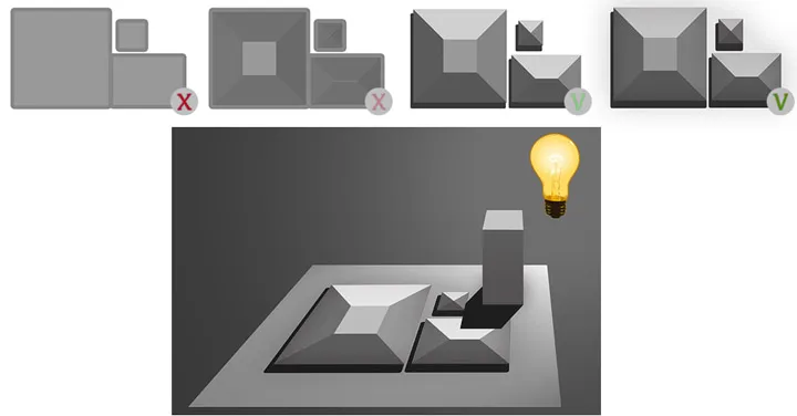 Цель – создать иллюзию поверхности с глубиной и геометрией освещаемыми общемировым солнцем.
