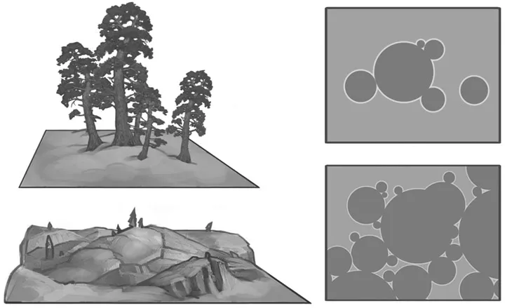 Итак , давайте представим что мы находимся в лесу). Посмотрите внимательно на окружающее вас пространство . Вы обнаружите что мир, ранее казавшийся вам полностью хаотичным и бесструктурным, на самом деле подчинен четкой логике. Оказывается, природа не терпит хаоса, и в любом открывшимся вам пейзаже, при должном усердии, вы обнаружите множество схем построения. Одна из них – это сетка масштабов.