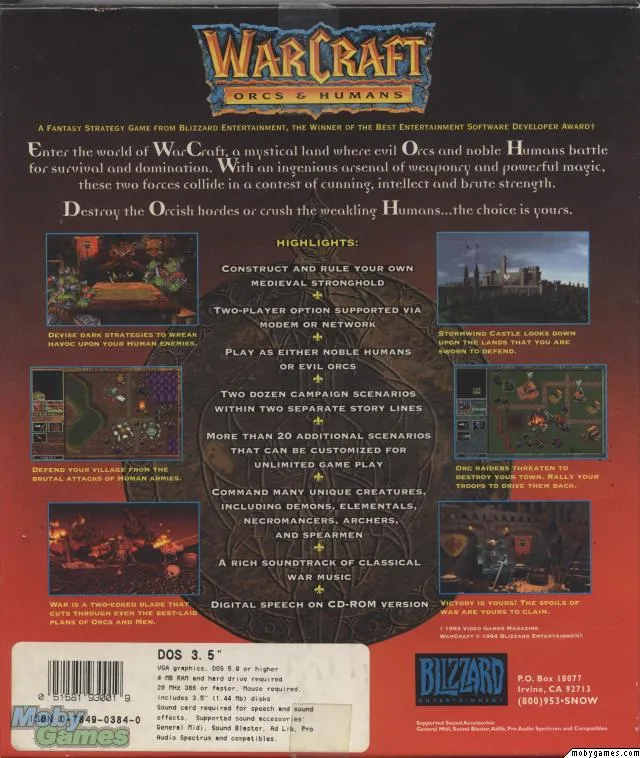 Уже в тот момент стало просто невозможно собрать документ, в котором было бы отражено кто и что придумал. Ну только, если не собирать всех заново, чтобы вспоминать как проходили наши беседы и кто что именно предлагал. И уже тогда стало сложно определить кого мы пропишем в графу Game Design, когда дело дойдет до «титров». Поэтому мы решили поступить очень по-эгалитаристски — мы решили прописать всех. Поэтому на коробке Warcraft: Orcs vs. Humans и написано «Game design by Blizzard Entertainment». По случайности, эта графа графа некорректно заполнена на Moby Games, они там смешали описание с более поздними версиями для Макинтоша и DOS-переизданием 98-ого года, таким образом забыв упомянуть множество ребят.
