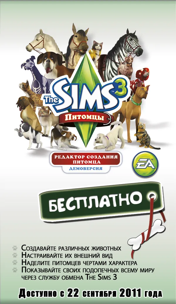 С радостью сообщаем, что с 22 сентября будет доступна демоверсия редактора создания питомца из The Sims 3 Питомцы!