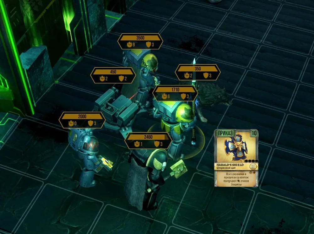 Перезарядка оружия – не такое простое дело, как может показаться. У Харальда всего одна возможность перезарядить пистолет, придётся сбросить много карт и пропустить достаточное количество ходов. Такая же проблема с перезарядкой оружия у Эйнара с той разницей, что ему необходимо перезаряжать два ствола. Брату Карлу перезарядка не нужна, но лучше, чтобы в его арсенале наготове были три-четыре мелтагана. В общем, уйдёт много времени: хорошо, что враги в этой миссии не появляются непрерывно, как в «Духе Машины».