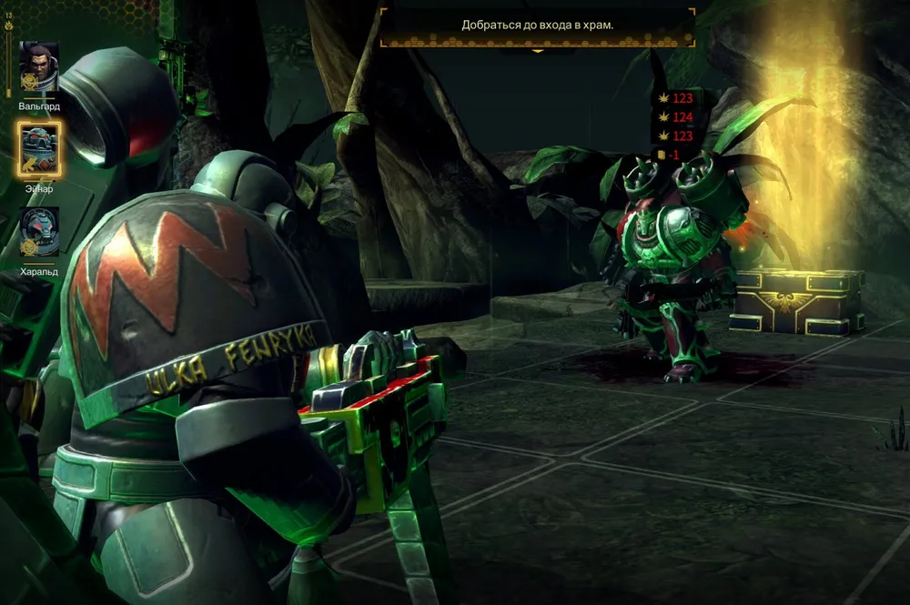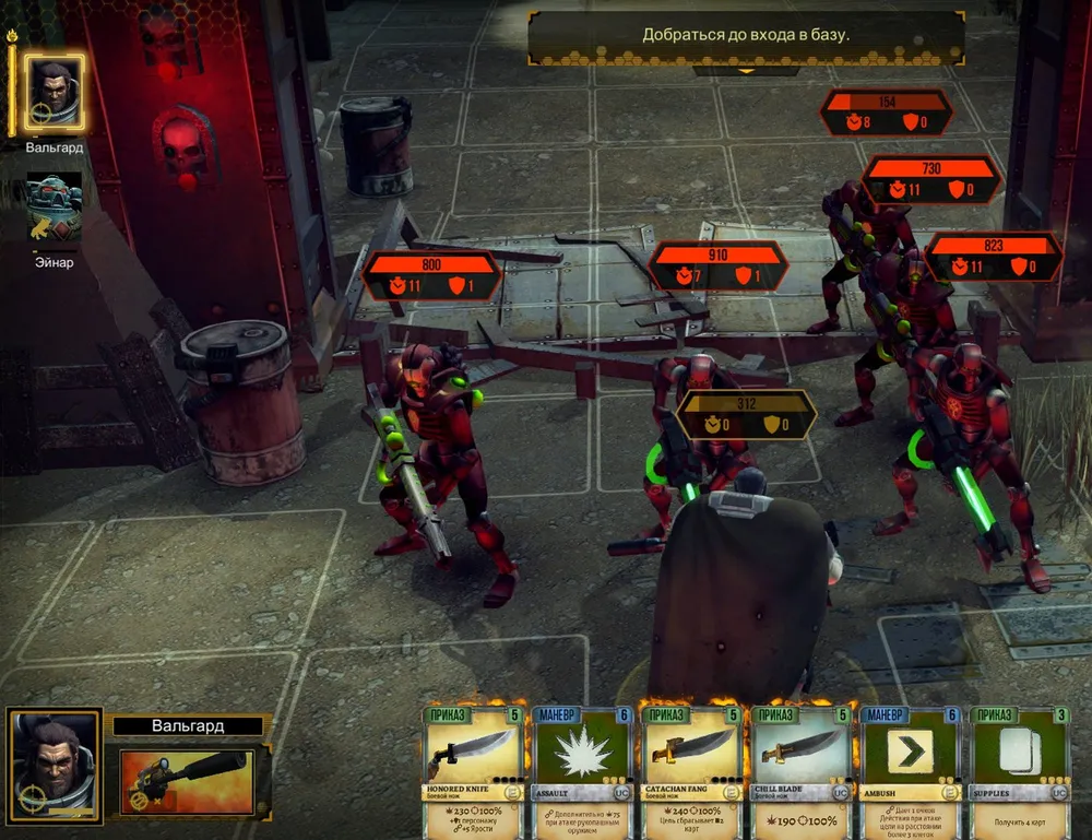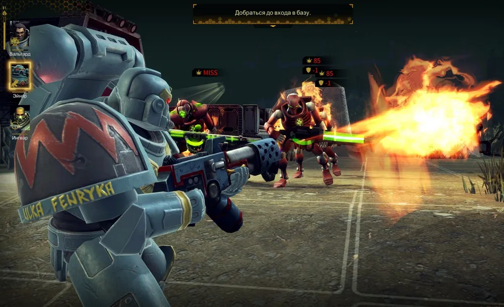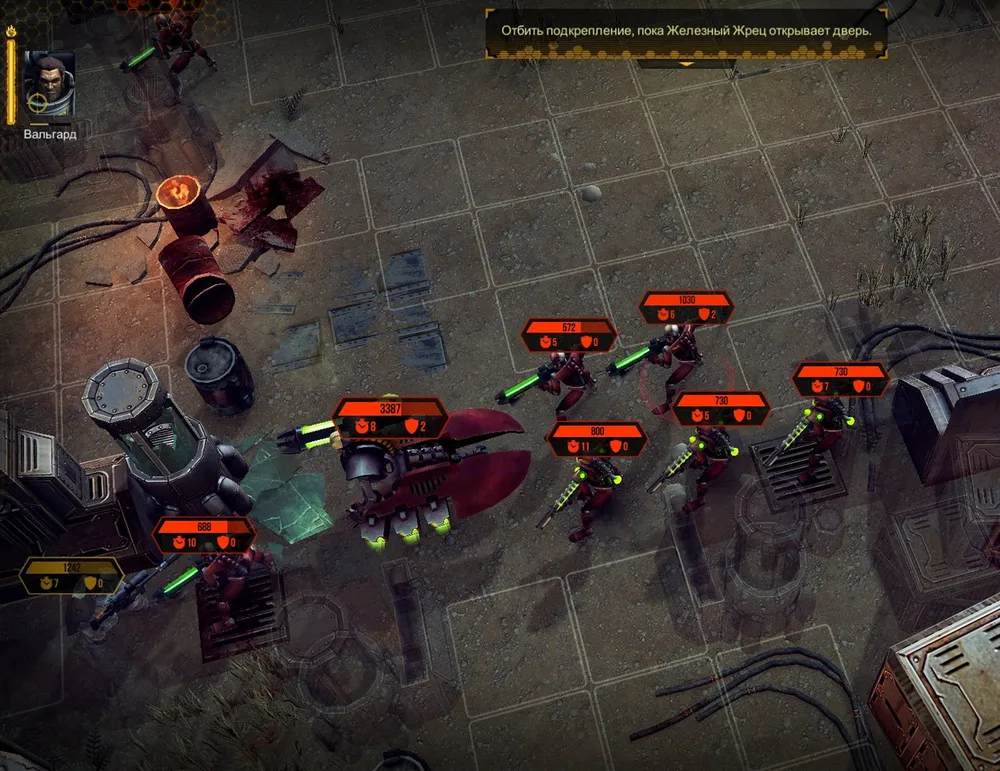 Четыре «Надзора» подряд - это очень неплохо, но всё равно маловато против многочисленных врагов. Тираниды используют дистанционную атаку, снимая броню и нанося серьёзные повреждения сразу всем бойцам (к счастью, турель поддаётся лечению). А затем некроны покидают выход и направляются к отряду Вальгарда…
