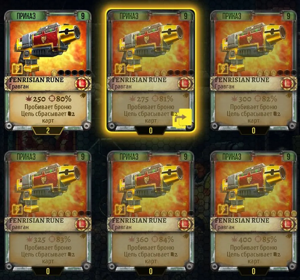 В частности, несколько карт «легендарного» Гравгана. С максимальной точностью попадания 85%.