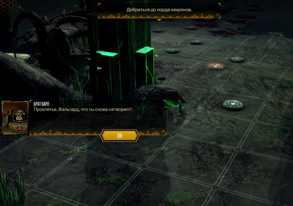 Сколько раз я вынужден был начинать её сначала – уже не помню. Начало миссии не особенно сложное; сражаться надо с десантниками хаоса. Но стоит подойти к выходу с локации, как появляются некроны. Бесконечные некроны, умеющие телепортироваться и лечить себя. Проигрыш.
