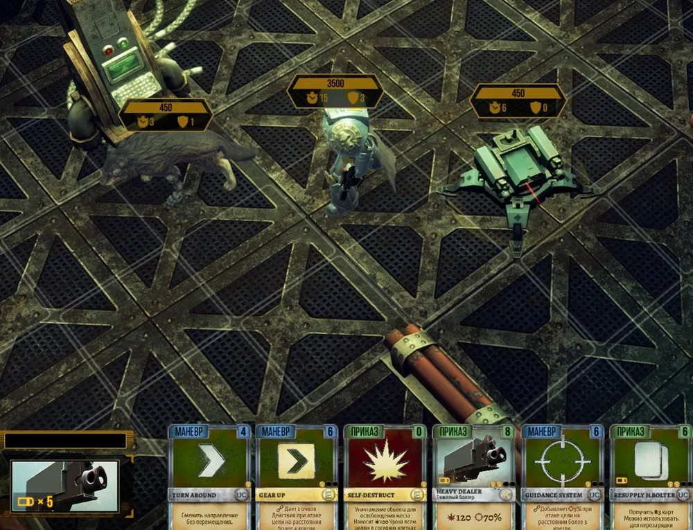 Раз уж у Вальгарда в колоде есть карты турели и мины – почему не использовать? Выяснилось, что турель можно поставить только одну, причём противник безнаказанно уничтожает её издали. Зато мин разрешается установить сколько угодно, причём они не вызывают детонацию друг друга, даже если расположены в соседних клетках. Неплохо; в отдельных случаях имеет смысл взять в отряд второго сапёра – Рэя.