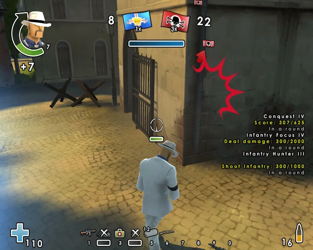 Достижения — довольно простой крючок для игрока. Вроде бы никакой пользы не несут (исправлено: здесь они дают VP, но в целом просто картинки), да и вообще ничего такого в них нет, а ведь какой, на самом деле, это эффективный инструмент. На консолях это давно поняли, Xbox вообще целиком пропитан духом различных свершений. Вот и в Battlefield Heroes для придания хоть какого-то смысла происходящему разработчики ввели обширную систему достижений.