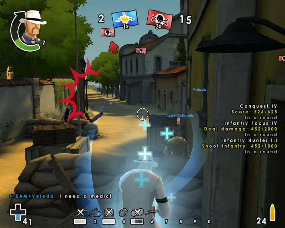 Team Fortress 2 — игра серьезная, хотя и выглядит весело и забавно. Тут важна тактика мастерство и слаженные действия команды. В Battlefield Heroes все проще. Здесь нет голосовой связи, а командные действия вообще почти отсутствуют, ведь игроки друг друга не знают, попадают на сервера случайно, а общаются только через текстовые сообщения, которые в бою только мешают.