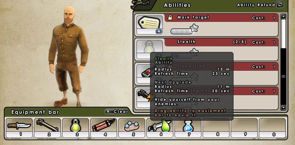 Он умеет больно резать ножиком людей, стрелять из снайперской винтовки и исчезать на месте. К тому же, все шпионы очень быстро бегают. Расплачиваться, правда, приходится здоровьем, причем весьма сурово. Если добыча заметила вас в невидимости, то смерть почти гарантированна — коммандос крайне хрупки, поэтому одинаково легко мрут как от стрелков и пулеметчиков, так и от своих же собратьев.