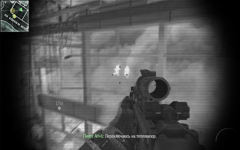 Один игрок управляет AC-130, второй работает на земле. На стрелка AC приходится основная работа, он должен расчищать путь пехотинцу, а тот должен за 1:27 отключить первую ракету, затем за 1:05 взломать кодовый замок и проникнуть внутрь комплекса. Обязательно нужно использовать все доступное вооружение. Вертолеты, кстати, отлично сбиваются крупнокалиберным пулеметом. А вот джипы даже не с одного выстрела главного калибра умирают. Учтите, что враги могут внезапно возникнуть из воздуха. Также обратите внимания, что второй калибр и пулемет заряжаются лентами, так что надо отстрелить ленту полностью, чтобы она заменилась. Обязательно стоит отключить тепловизор, обычный режим удобнее. Кстати, вы можете приближать камеру AC с помощью клавиш движения.