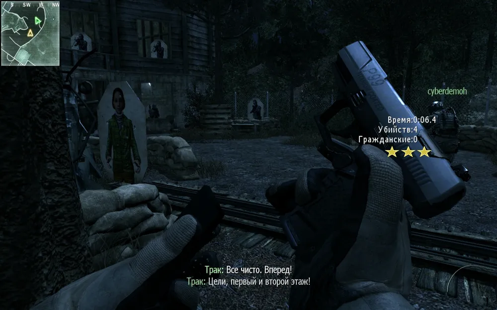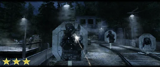 Практически тот же «Полигон» из MW2, нужно уложиться в 28 секунд для получения трех звезд. Делите с напарником цели (на правые и левые). И очень желательно пользоваться пистолетами. С нескольких попыток (а может и одной) наверняка пройдете.