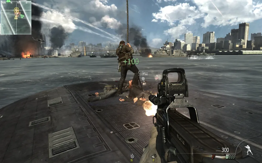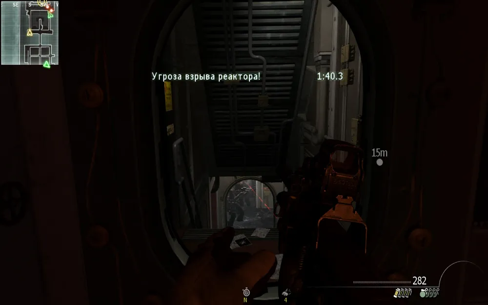 Нужно высадиться, предотвратить взрыв реактора за 5 минут (начиная с момента проникновения внутрь), после чего не торопясь эвакуироваться с подлодки. Советую обменять свой MP7 на P90, с которыми ходят враги. В тесных коридорах он куда лучше. Дробовик я тоже не оценил. При высадке нужно сразу взять на прицел оба борта подлодки, из дыма сразу попрут враги, а прятаться негде. Очень осторожно нужно продвигаться через первый и второй залы. Они представляют собой «решетки» проходов, да еще и двухярусные. Дальше особых проблем нет, если не лезть на рожон. Выбравшись на воздух, прячьтесь за ящиками, изредка высовываясь для отстрела врагов. В конце можно даже успеть сорвать высадку с вертолета новой партии.