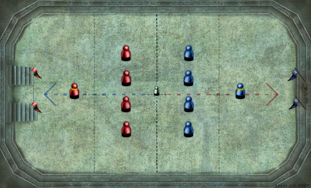 * Две команды с одинаковым числом игроков (обычно 4+1) примерно равного уроня, заключенные в прямоугольную арену.