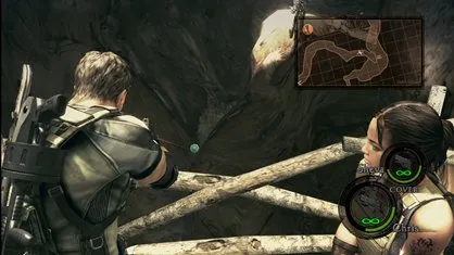 1) Покинув причал, отправляйтесь прямиком в пещеру. Идите вперёд, попутно отстреливая мелкую живность. Пройдите мимо лестницы. Когда вы достигните входа в пещерку, повернитесь направо. Внизу, на противоположной стороне висит первая эмблема BSAA.