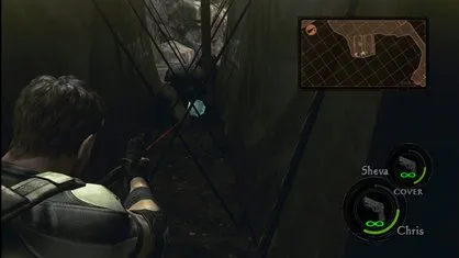 1) Когда начнётся уровень, сядьте в лодку. Подплывите на открытое водное пространство и осмотритесь. Вы должны заметить столб в воде, через который проходит канат. В этой локации таких столбов несколько, но необходимый столб расположен рядом с тем причалом, от которого вы только что отплыли. Осмотрите столб, и вы обязательно на нём найдёте первую эмблему BSAA. Позвольте игроку, стоящему на корме лодки выстрелить по эмблеме, либо сами возьмите геймпад второго персонажа в руки, и уничтожьте эмблему BSAA.