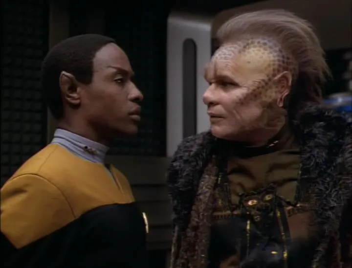 Другая претензия к "Вояджеру" связана с действующими героями, образами персонажей. Тут банально можно начать с того, что командир корабля — женщина, Кэтрин Джейнвей, а не волевой орёл-мужчина. Или местный аналог знаменитого вулканца Спока — чернокожий Тувок. Эти и другие критические замечания связаны с тем, что подобные детали "Вояджера" нарушают прописанные каноны вселенной Star Trek. Поскольку я не так сильно сведущ по этому вопросу, не могу оценить их обоснованность. С другой стороны, не все персонажи обладают интересными чертами. Парочка приятелей - Томас Пэрис и энсин Гарри Ким - это очень уж типичные персонажи, без "изюминки" или "перчинки". Хотя Томаса Пэриса сначала представляют весьма интригующе - его забирают из тюрьмы как бывшего участника группировки Маки, посрамившего к тому же честь мундира Звёздной академии. Мог получиться персонаж, склонный к нарушению субординации и своевольности, но этого не будет.