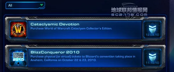 Наличие прикрепленной коллекционки World of Warcraft: Cataclysm к аккаунту даёт бонусы в виде пары аватарок и знаков отличия в игре Starcraft 2.