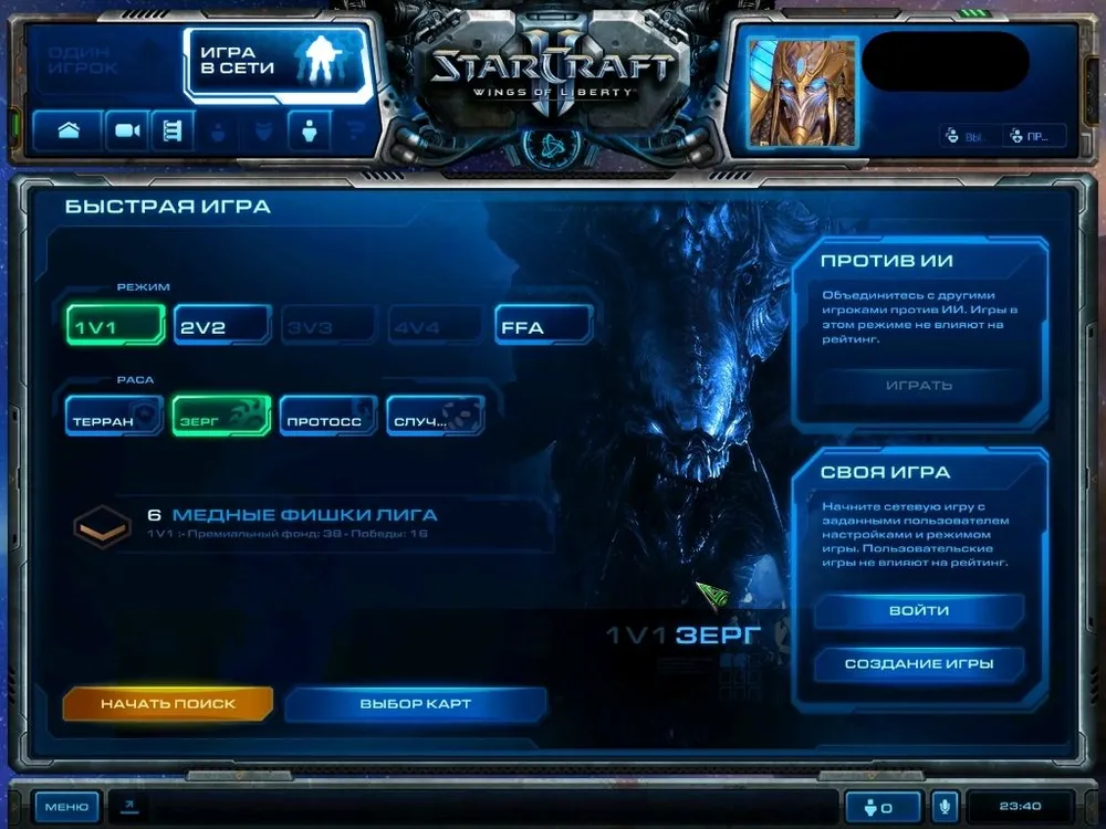 Не изменяя своей расе, зашел в ладдер, поставил зерга и нажал на заветную кнопочку.