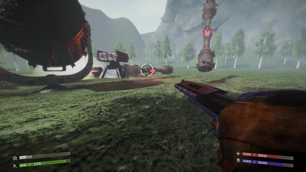 Нас встретит зеленый пятачок земли с березками и кустиками, окруженный сюрреалистичными горами. Давайте же перечислим, чем можно развлечься в альфе: