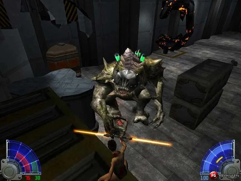Ну а совсем недавно, весной прошлого года, Lucas Arts доверила компании Raven Software создание игры Jedi Outcast. Интересный сюжет, выдержанный в стиле предыдущих игре серии геймплей (Кайл, меч, штурмовики...), продуманный мультиплеер и скрытый режим, дающий возможность лишать своих врагов различных конечностей (с этим был связан забавный баг, когда отрубленных конечностей у врага оказывалось больше, чем положено). У этой игры было всё, чтобы стать популярной... но чего-то не хватало. И вот, год спустя, появилась новая часть серии: Jedi Academy, в которой реализовано всё, чего так остро не хватало в предыдущей игре.