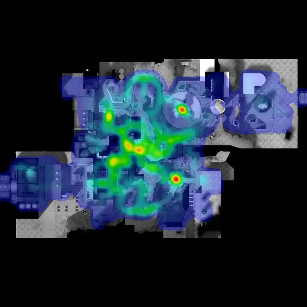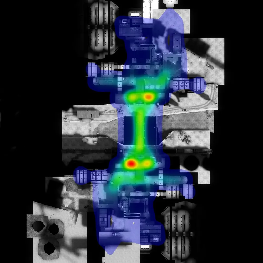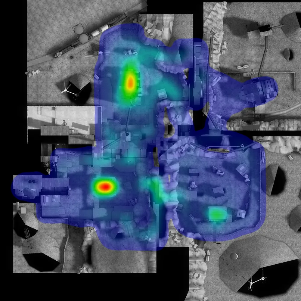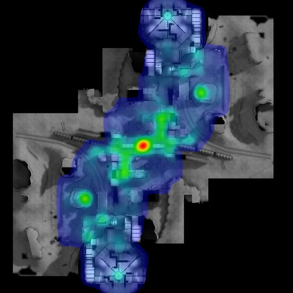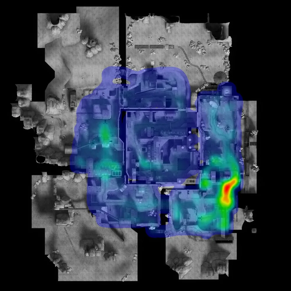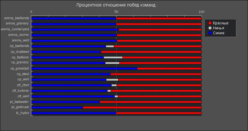 Ну на сладкое - процентное соотношение побед команд на официальных картах Valve + места смертей (где больше человек умирает, там цвет - ярче) =)