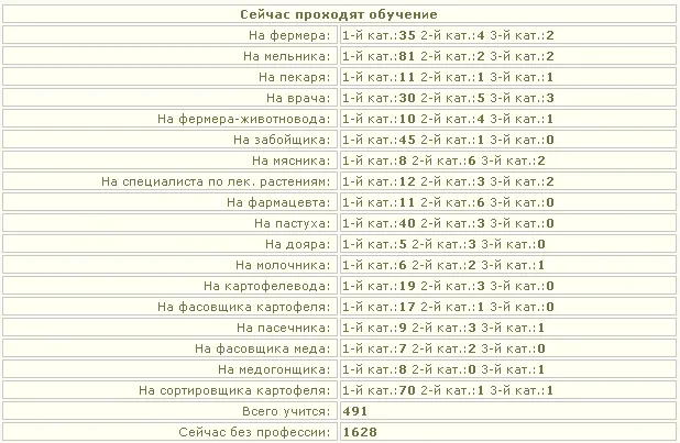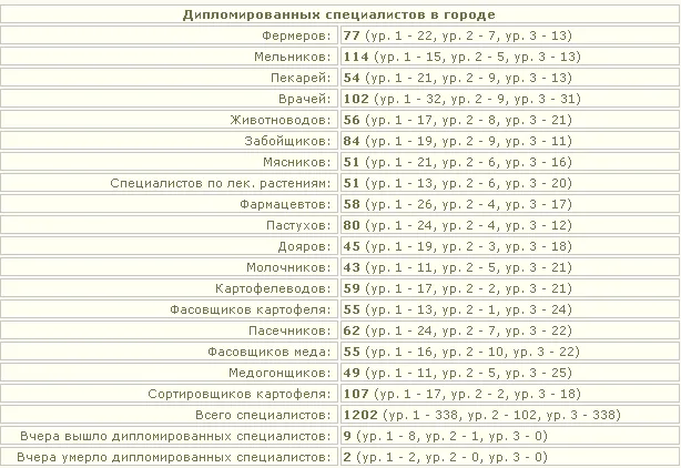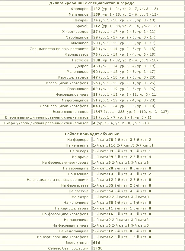 На данном этапе игра содержит данное количество получивших профессию игроков.