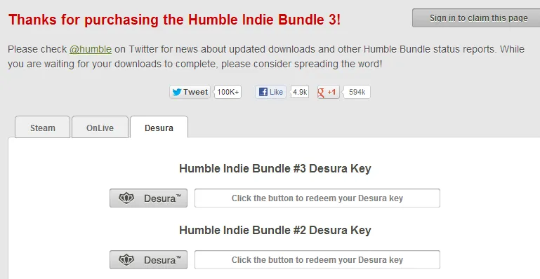 Как показал опрос, большинство поддержало розыгрыш Desura ключей Humble Indie Bundle 2/3, поэтому я решил разыграть их. На steam ключи в сборнике прошу не обращать внимания - они уже активированные. Для получения приза просто перейдите по ссылке и переключите окошко на Desura.