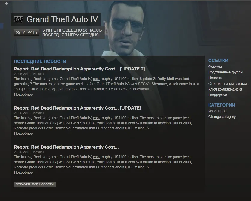 Запускаем прокси и заходим стим, видим и GTA 4 и эпизоды для него, и Max Payne и разные интересные аркады.