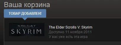 - Добавляем The Elder Scrolls V: Skyrim в корзину