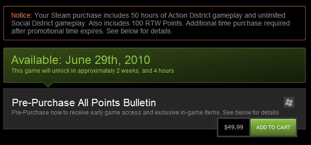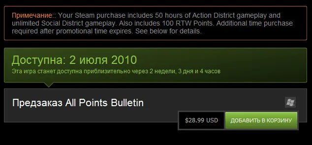 Возьмем например игру APB All Points Bulletin, цена данной игры в стиме была (как и для всех) $49.99 и зайдя недавно в стим мы видим другую цену - 8.99