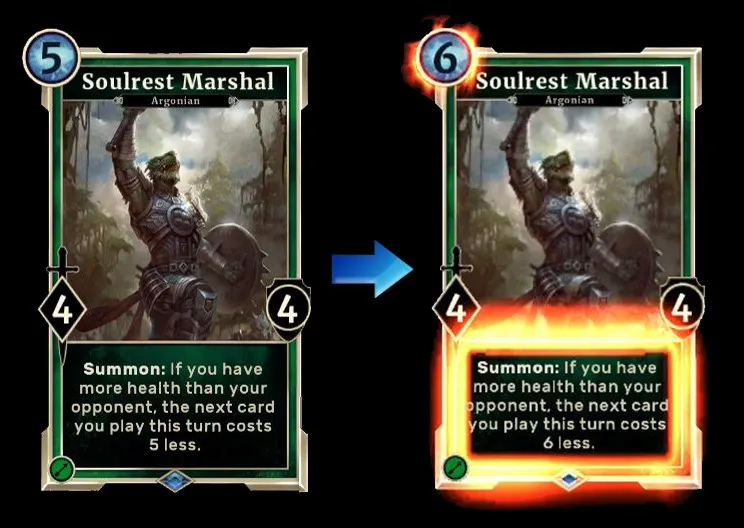 Стоимость «Маршала Соулреста» повышается с 5 до 6, но и скидка на стоимость следующей разыгрываемой карты также становится 6.