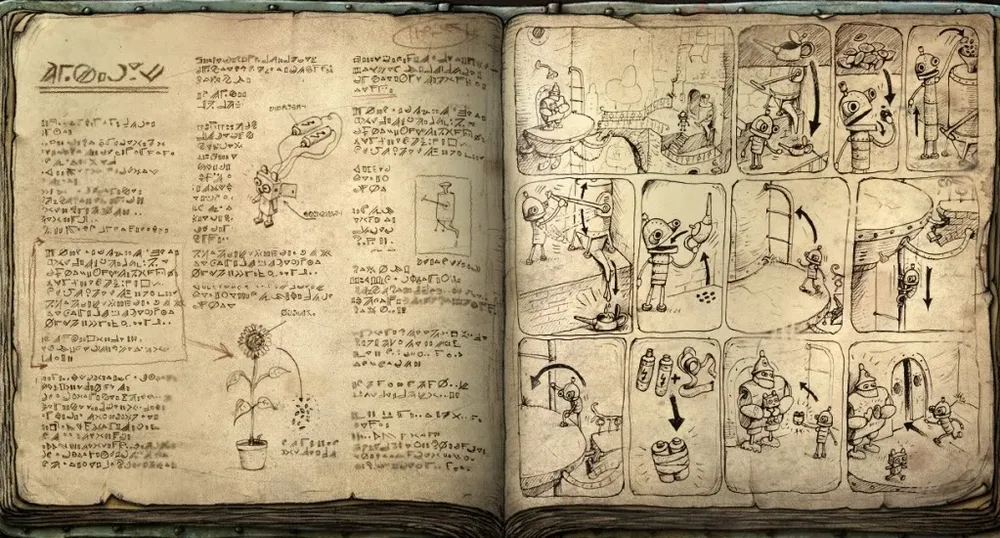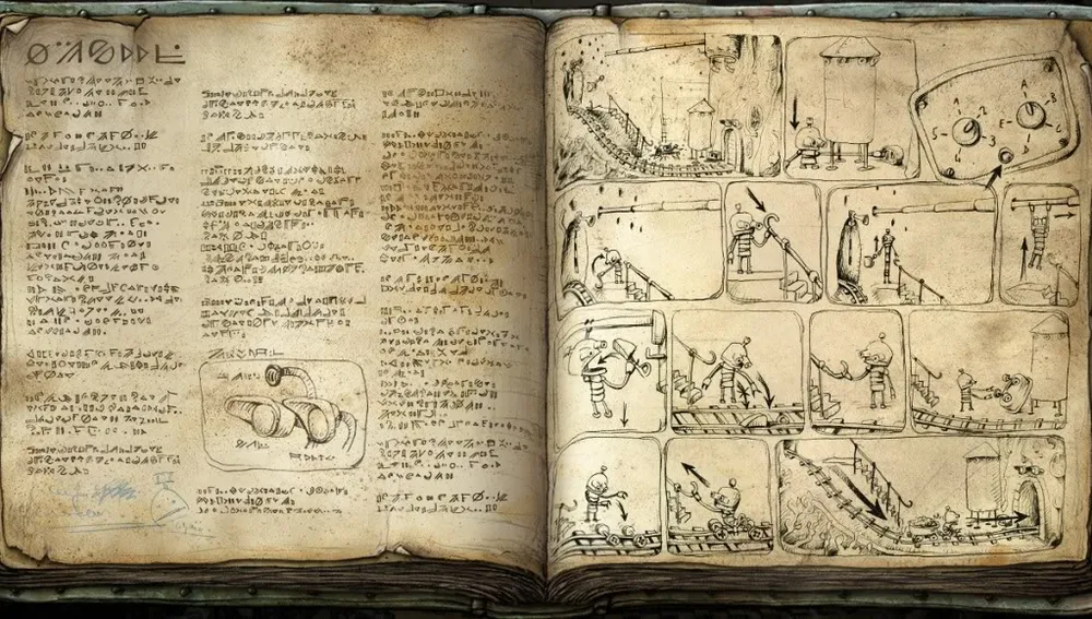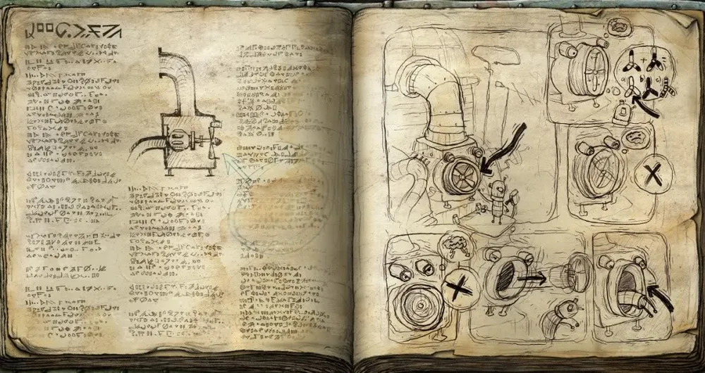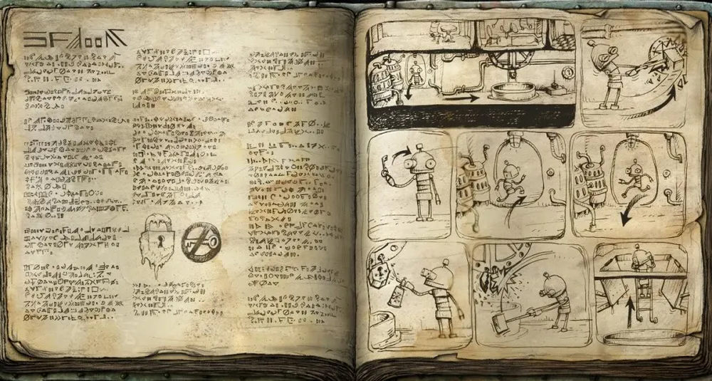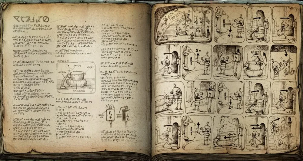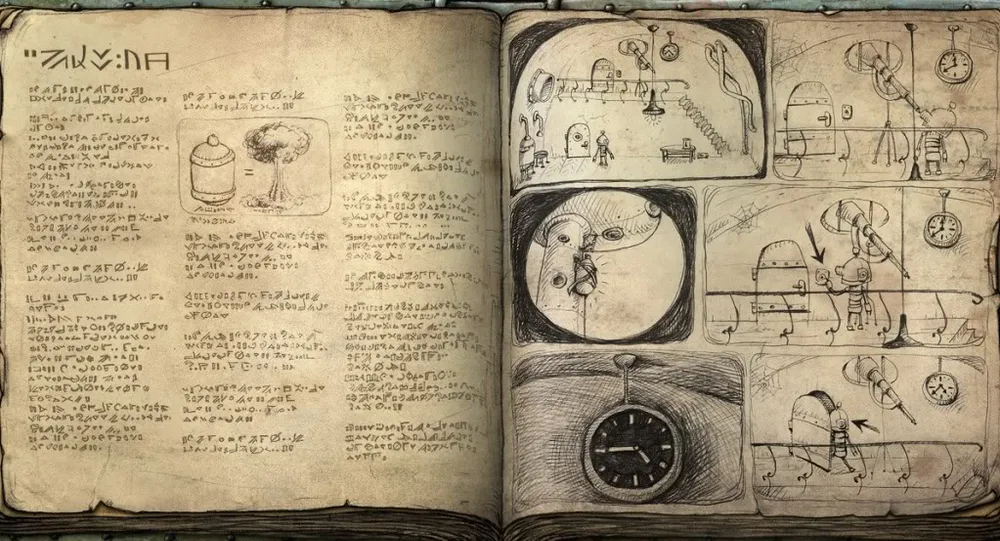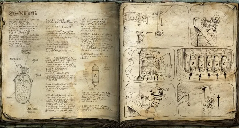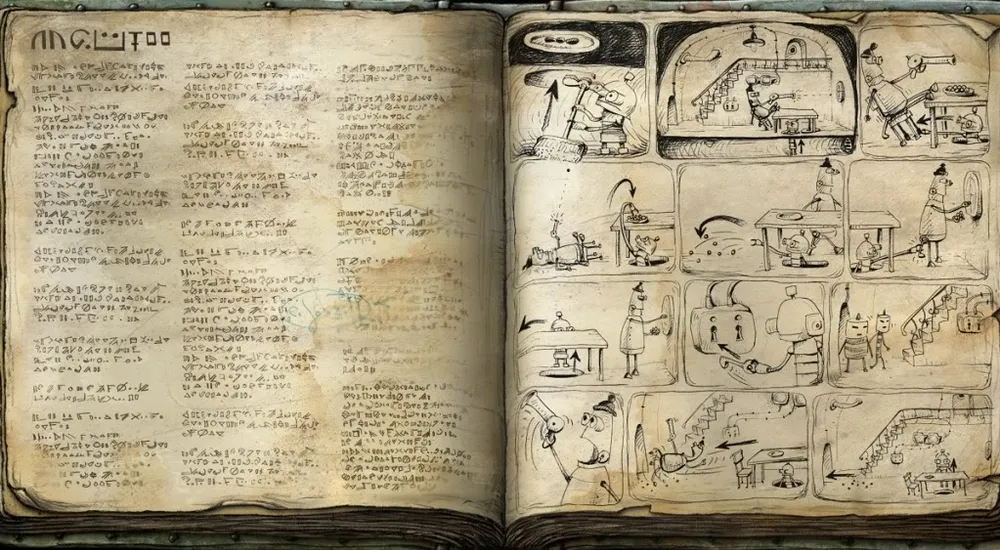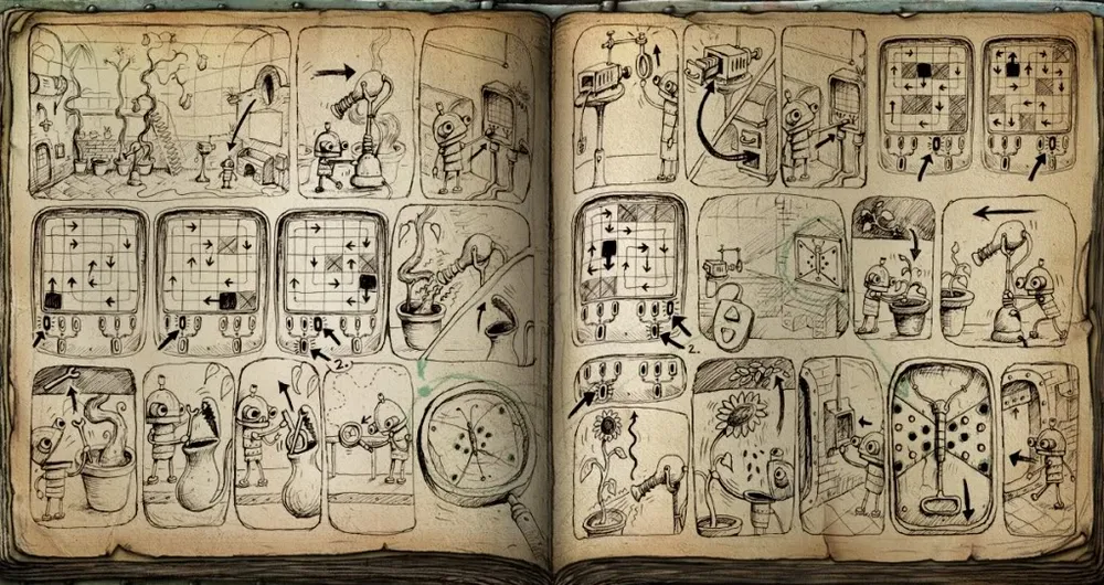 Надеюсь, все знают, что в игре есть встроенная система подсказок. Подсказки в каждой локации новые и делятся на два уровня. Первый уровень - это облачко, где указано только направление, в котором нужно двигаться. Второй - полное прохождение локации в виде страницы из книги. Причем, чтобы добраться до этой страницы нужно еще пройти мини-игру - сайдскроллер, в котором требуется долететь ключом до замочной скважины.