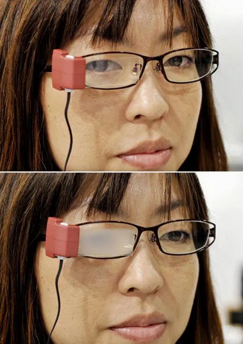 8) Очки предназначены для избежания сухого глаза, когда пользователь сосредоточен на играх или пребывает в Интернете. Они имеют датчик для обнаружения, как часто глаз пользователя начинает моргать. Объектив затуманивается когда пользователь сохраняет свои глаза открытыми в течение пяти секунд, не моргая. (AFP/GETTY)