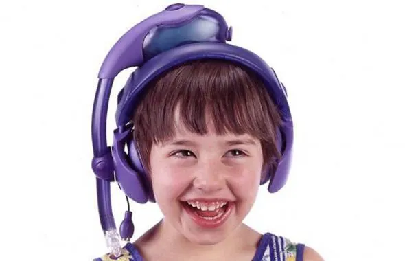 7) Ребенок демонстрирует PediSedate, который мягко успокаивает молодежь вводя наркоз через гарнитуру когда дети играют в портативные игровые консоли. (REX FEATURES)